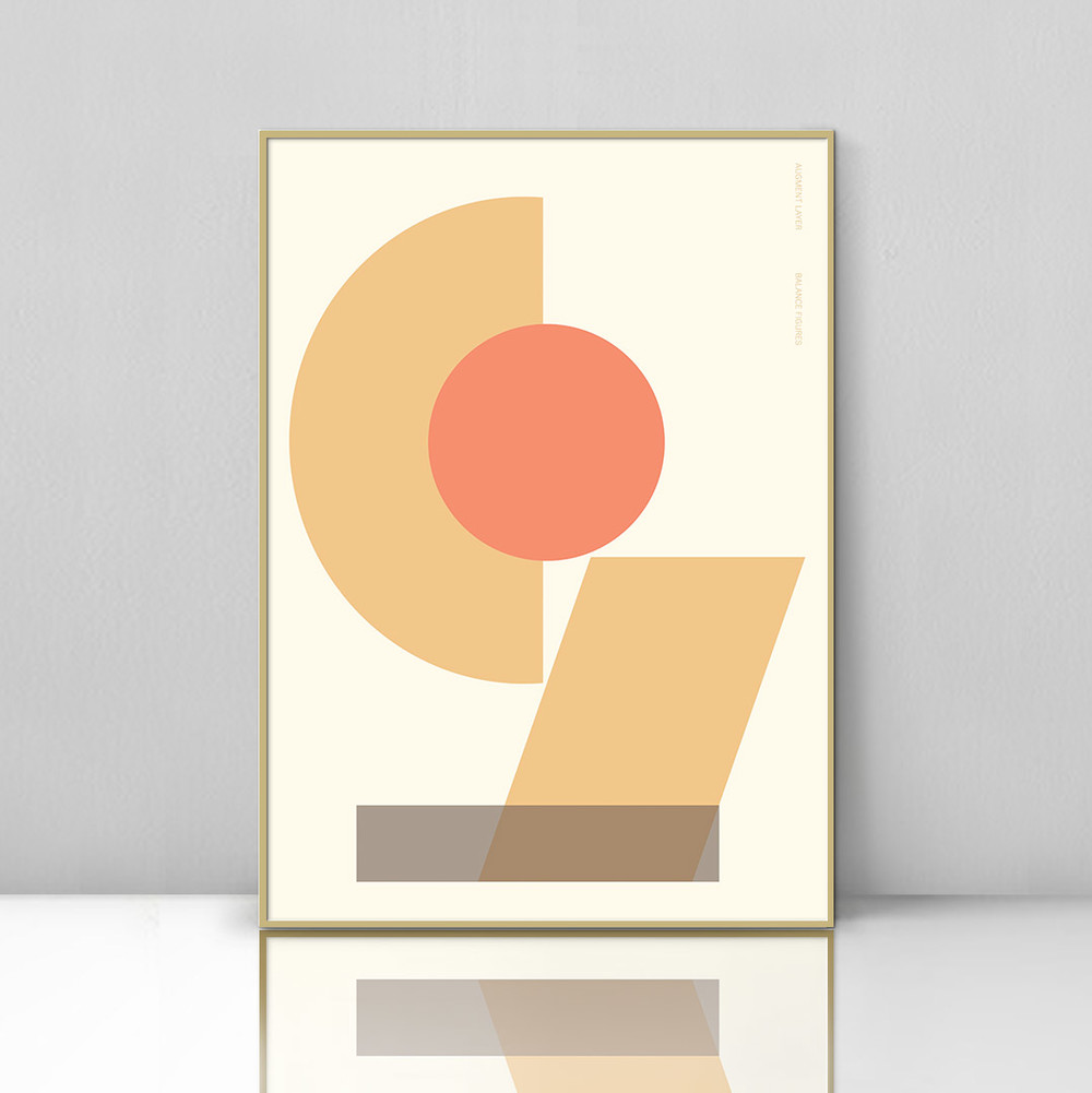 다양한 형태의 도형들이 균형적인 구성 안에서 조화를 이루는