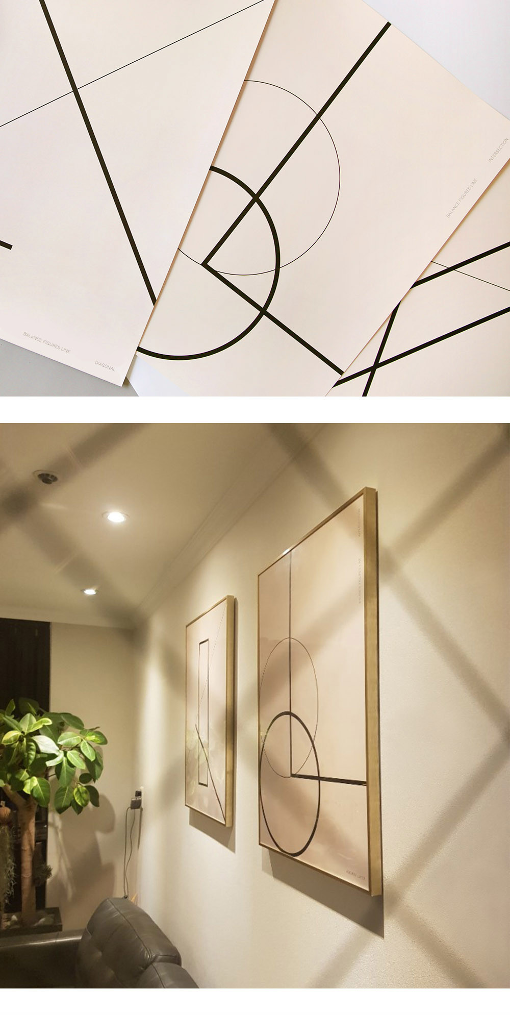 균형감을 디자인 요소로 풀어내어 재구성한 세련된 느낌의 그래픽 디자인입니다.