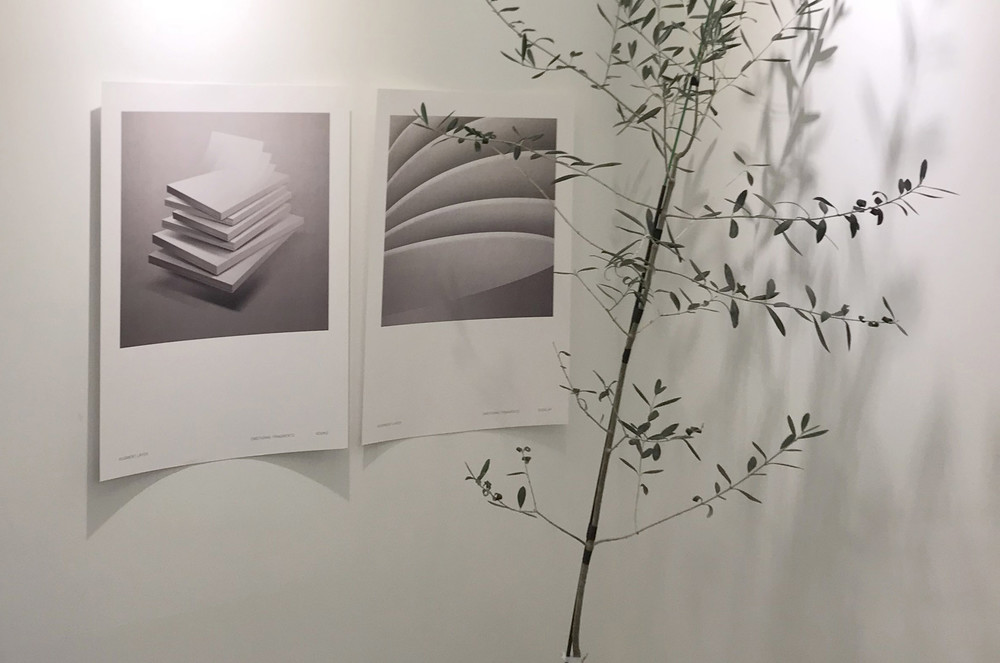 감성의 조각들 - 책, 도자기, 중첩된 잎들이 정적인 분위기 속에서 감성적인 묘한 움직임을 나타냅니다.