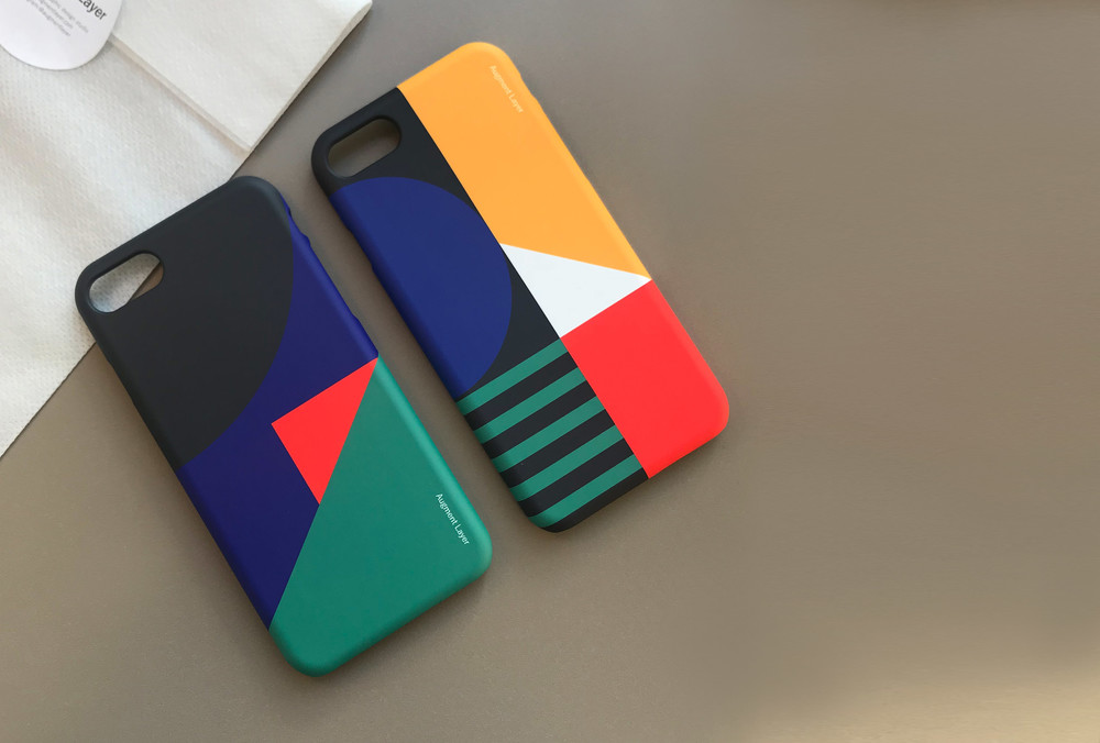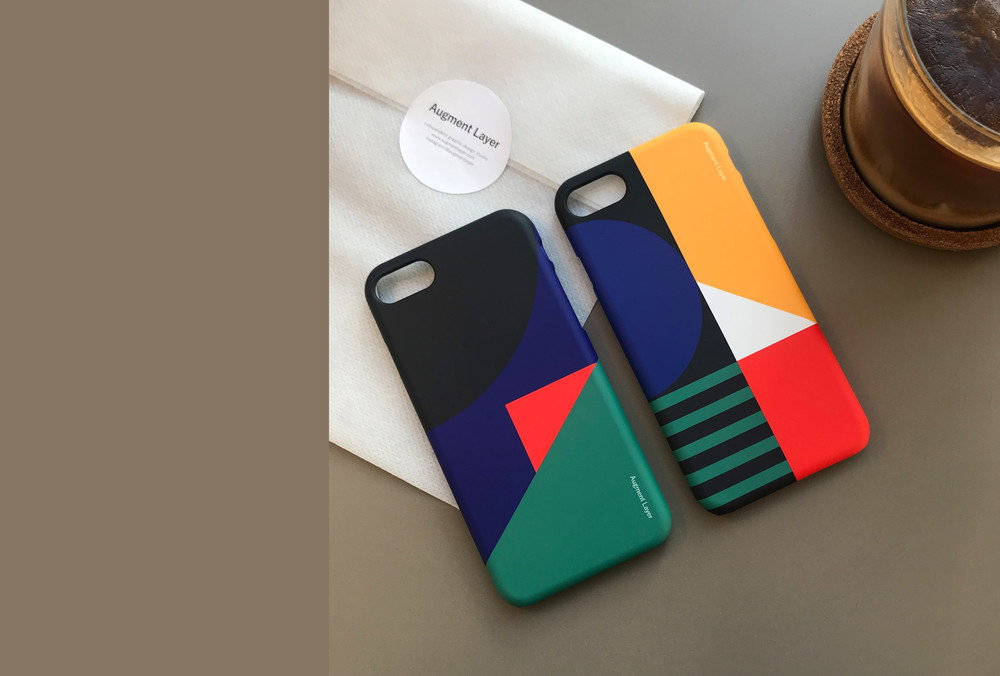 도형과 라인의 균형, 비균형에 대해 연구하는 어그먼트 레이어의 디자인 톤을 적용한 핸드폰 케이스입니다.