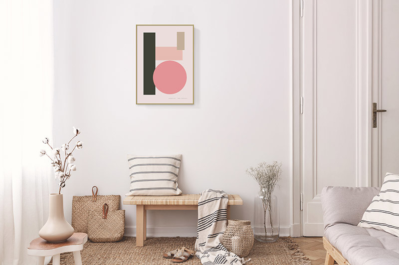 따뜻한 색감을 가진 각각의 도형들이 무게 있는 구성으로 조합되어